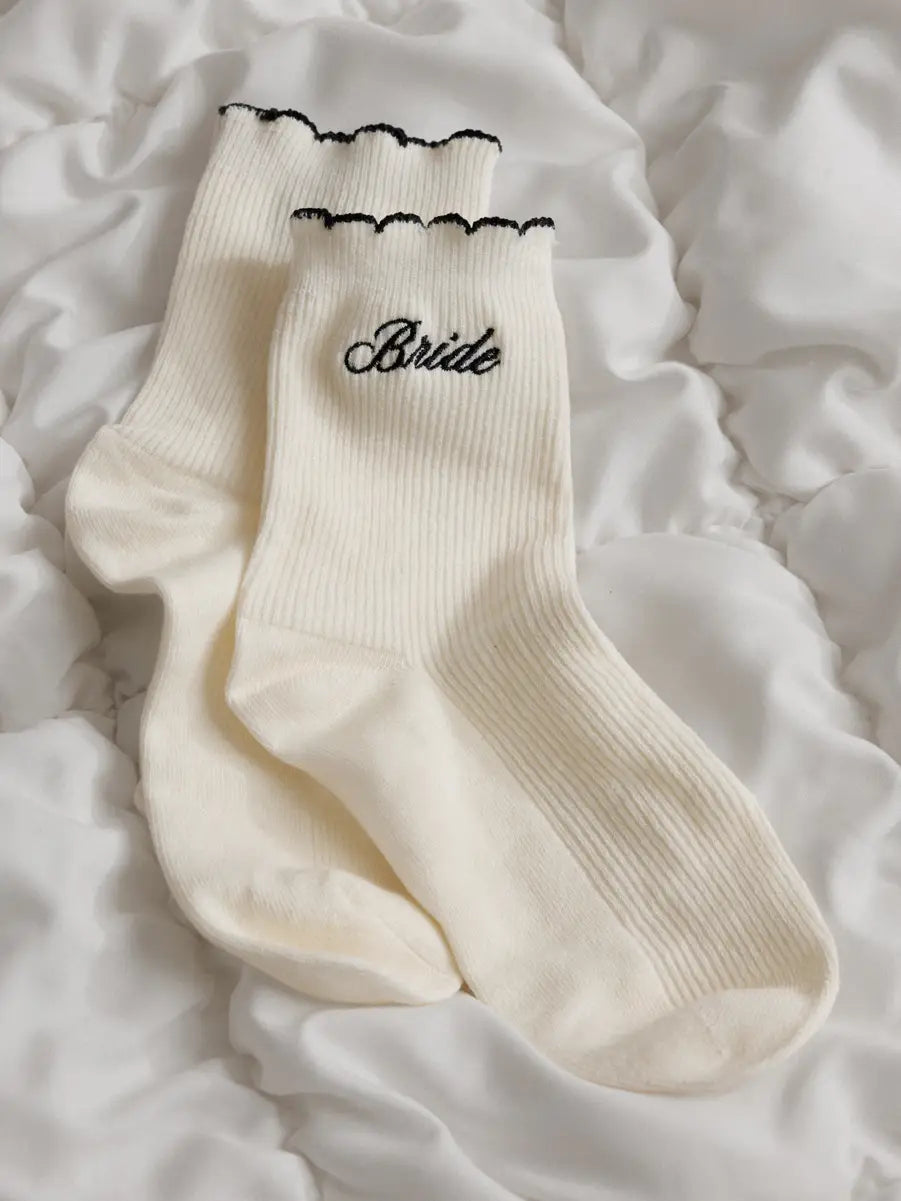 "Bride" Embroidered Ruffle Socks