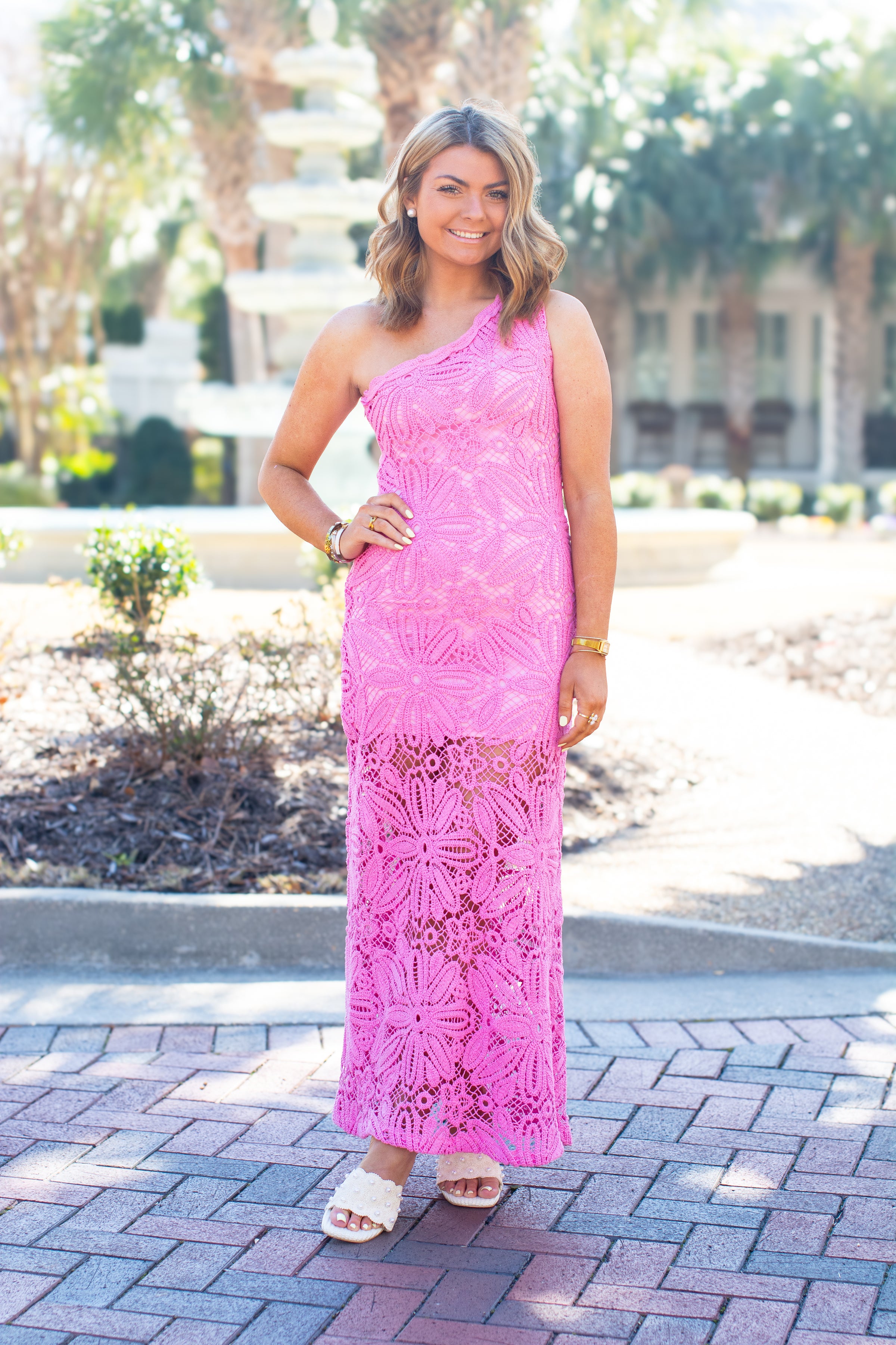 Escape to paradise with the Island Crush Dress, a stunning pink crochet maxi that captures pure island vibes. This gorgeous one-shoulder design flows effortlessly from day to night, perfect for beach getaways, tropical vacations, or whenever you want to channel that carefree coastal spirit. The delicate crochet detailing adds texture and movement, while the flattering silhouette keeps you feeling confident and fabulous. Whether you're sipping cocktails by the ocean or dancing under the stars, this dress is your ticket to looking absolutely radiant.